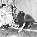 Curatella Manes y treinta artistas de la nueva generación, organizada por Germaine Derbecq en la Galería Creuze de París. Allí presenta su primera obra de arte vivo,