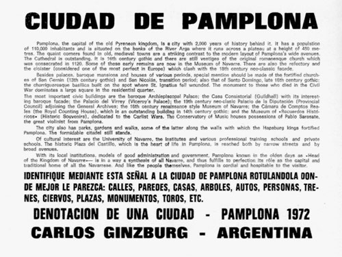 Señalamiento V: Un paseo visual por la Plaza Rubén Darío (1970), en la que provee a los visitantes de una tiza y una tarjeta con instrucciones que los invitan a delimitar un espacio propio y a construir una trayectoria visual singular sobre el entorno.
