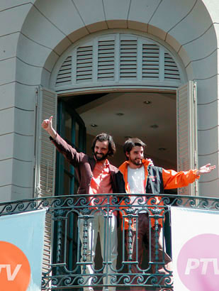 La ironía es una dimensión frecuente en la expresión crítica. Sutilmente utilizada es capaz de matizar sucesos y actitudes polémicas con una dosis de humor, sin renunciar al análisis ni al juicio. En el marco de las elecciones presidenciales de 2003, Lucas Di Pascuale funda el P.T.V. (Partido Transportista de Votantes) con el fin de trasladar a los electores hacia los lugares donde deben emitir su voto. Este objetivo se basa en una práctica política común: la de algunos partidos que, tras “comprar” votos, transportan a los votantes hacia las urnas para asegurar la emisión del sufragio correspondiente. Di Pascuale se ofrece gratuitamente a llevar a aquellos que lo soliciten hacia su lugar de votación pero en representación de su partido, del que se autodenomina “artista fundador”, con el fin de que el transportado vote a quien quiera. También diseña una campaña de promoción, una estrategia comunicacional e incluso un estatuto partidario que dan mayor credibilidad a su organización. Extrayendo un aspecto de la práctica política –uno de los más dañinos– y transformándolo en la base de un partido diferente, la obra se constituye en un ácido comentario sobre algunas falencias que subyacen todavía al sistema democrático.