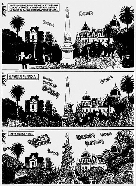 Historieta surgida de la colaboración entre el dibujante Nahuel Rando y el artista plástico Luis F. Noé. El argumento parte de una novela escrita por Noé en 1974 y desarrolla en clave fantástica las tensiones políticas de los años 70 y sus consecuencias sobre la historia posterior de la Argentina. La ciudad está retratada de forma y extremadamente plástica, con un especial protagonismo del eje de la Avenida de Mayo.