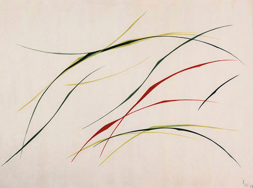 Yente siempre parecía querer escapar de los rigores de las formas controladas, introduciendo perturbaciones plásticas que dieran variedad a la obra. En este sentido, esfumados, mezclas cromáticas de diferentes tintes en un mismo plano, huellas de trazos, tramas lineales u óleo aplicado con espátula aparecen con frecuencia en este período. A estos recursos, empleados en composiciones geométricas donde prevalecen las rectas, aunque no siempre las figuras regulares, sumó una serie de etéreos dibujos realizados con líneas moduladas de diseño espontáneo en el que predominan las curvas, que en su variedad cromática flotan ingrávidas sobre el blanco del papel. Son las que inician su etapa de abstracción libre.
