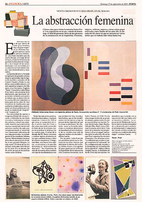 [...] Eugenia "Yente" Crenovich y Lidia Elena Prati fueron dos pioneras de la abstracción, que aportaron importantes variantes personales al debate que se desarrolló en la escena del arte argentino a principios de los años 40. Dos creadoras de mucho peso que acabaron condenadas a desempeñar un rol secundario por culpa de su condición de "mujeres" o de "mujeres de".