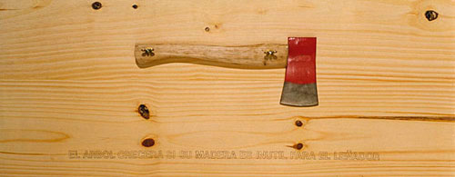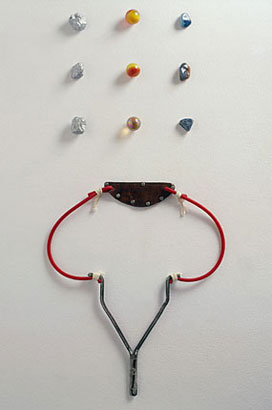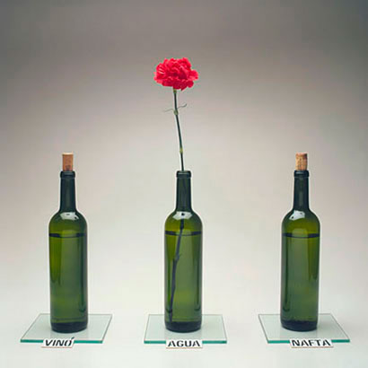 Los objetos de uso llevan implícita en su forma la facultad de cumplir con una determinada función. Pero la necesidad y un poco de ingenio pueden alterarla, torciendo su destino original. Así Zabala explora, por ejemplo, la capacidad de una botella para hacer de recipiente, florero, bomba o arma cortante. También examina el cruce entre un título, un nombre notorio de la literatura y una cierta distribución sobre un estante, que hacen verosímil la metamorfosis de latas de aceite en libros.