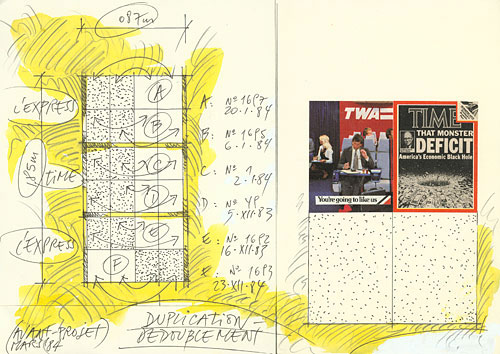 En 1984 Zabala inicia su serie Duplicaciones, reproduciendo con técnicas plásticas tradicionales (tinta, pastel, collage, etc.) tapas de revistas internacionales como Der Spiegl, L'Express y Time. Amplía el alcance de la acción relacionándola con las nociones de réplica, derivación, imitación, recreación, interpretación y analogía. La paradoja de que los verdaderos “originales únicos” sean las “copias”, otorga al arte el poder de desbaratar la unidireccionalidad del sentido. Igual mecanismo emplea luego en los diarios, anulando el contenido informativo del texto, para resaltar la forma que lo diagrama.