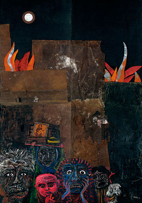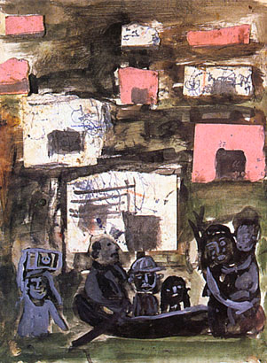 Juanito Laguna embodies the childhood outcast by underdevelopment. Although he originates in local circumstances, the character transcends what's regional: he is one of the many "changuitos" (kids) of the Argentine north who emigrated with his family, from the countryside into the industrial suburban belt, in search for opportunities. His habitat is the "villa miseria", the shantytown built with remainder materials, the same stuff Berni eloquently used to depict the characters as well as their environment.